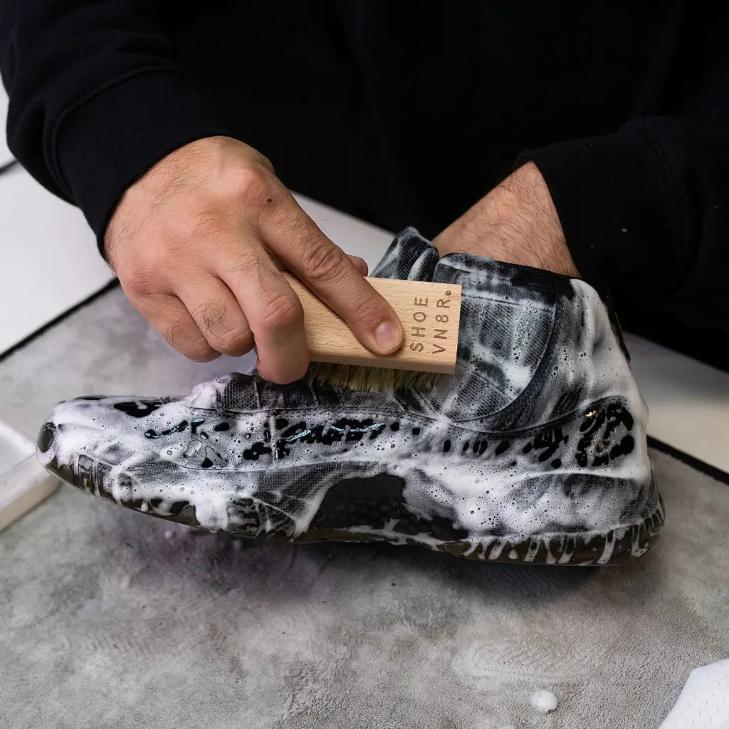 Start with a proper clean using Reshoevn8r’s Essential Shoe Cleaning Kit to remove dirt, grime, and buildup from uppers, midsoles, and outsoles. Then finish strong with Sole Revive, our targeted solution for reducing yellowing and oxidation on your soles.